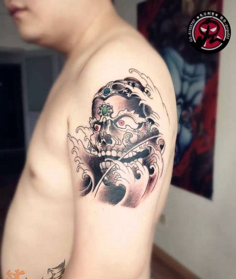 当前位置: 首页 >安徽省亳州市纹身店-鬼谷刺青工作室纹身图案>嘎巴啦纹身图片_成品手臂传统宗教纹身图案
