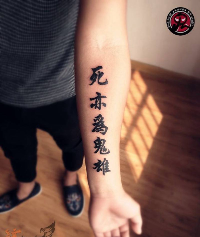 当前位置: 首页 >安徽省亳州市纹身店-鬼谷刺青工作室纹身图案>小臂文字纹身图片_成品手臂传统文字字符纹身图案