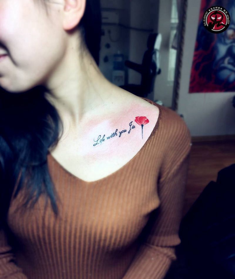 当前位置: 首页 >安徽省亳州市纹身店-鬼谷刺青工作室纹身图案>美女锁骨英文纹身图片_成品胸部清新纹身图案