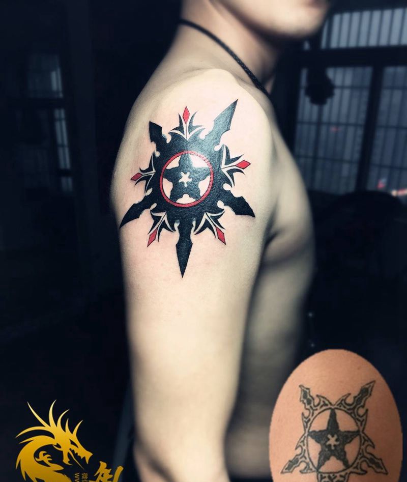 • 纹身吧推荐的披肩图腾半胛纹身图案作品展示