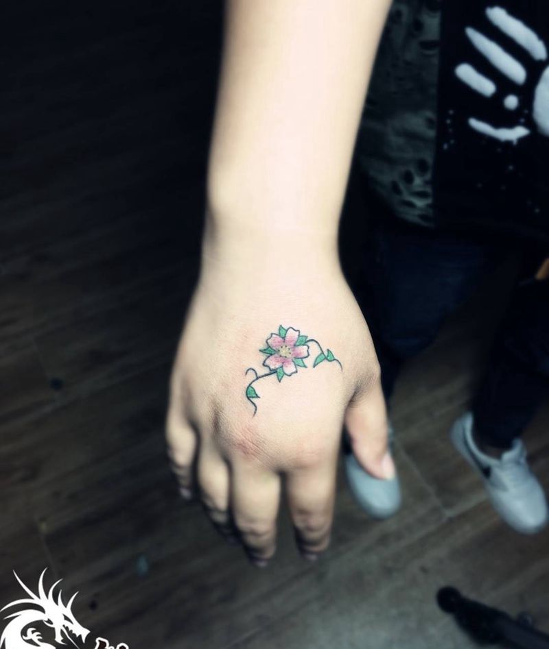 • 手背潮流时尚的玫瑰花眼睛纹身图案