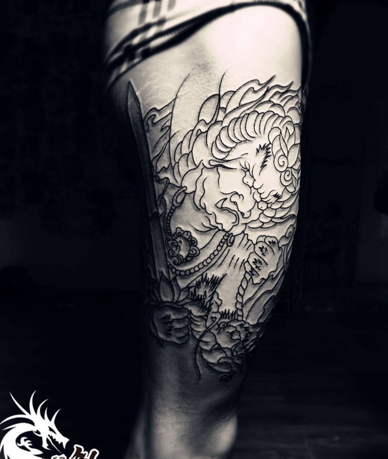 • T网红王老大花腿龙纹身图片_腿部新传统纹身图案