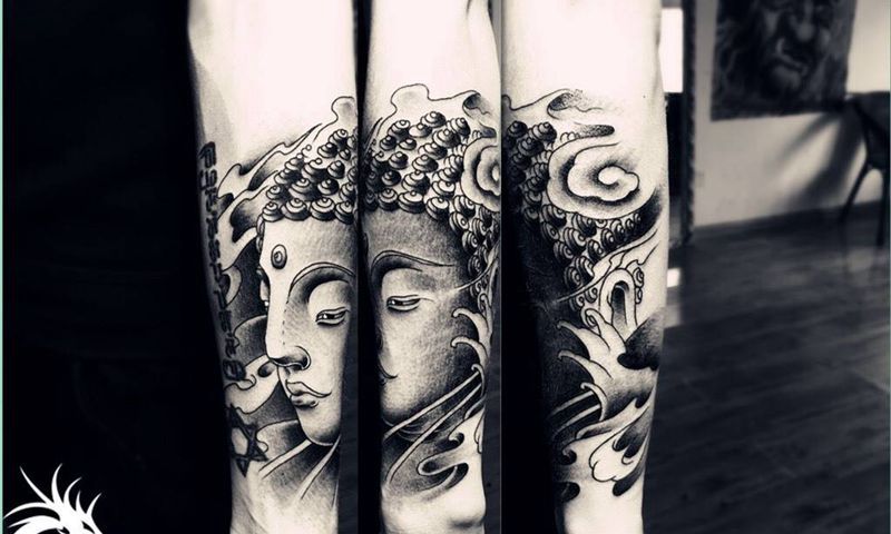 当前位置: 首页 >安徽省亳州市纹身店-鬼谷刺青工作室纹身图案>佛头两枚纹身图片