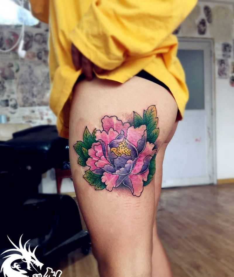• T网红王老大花腿龙纹身图片_腿部新传统纹身图案