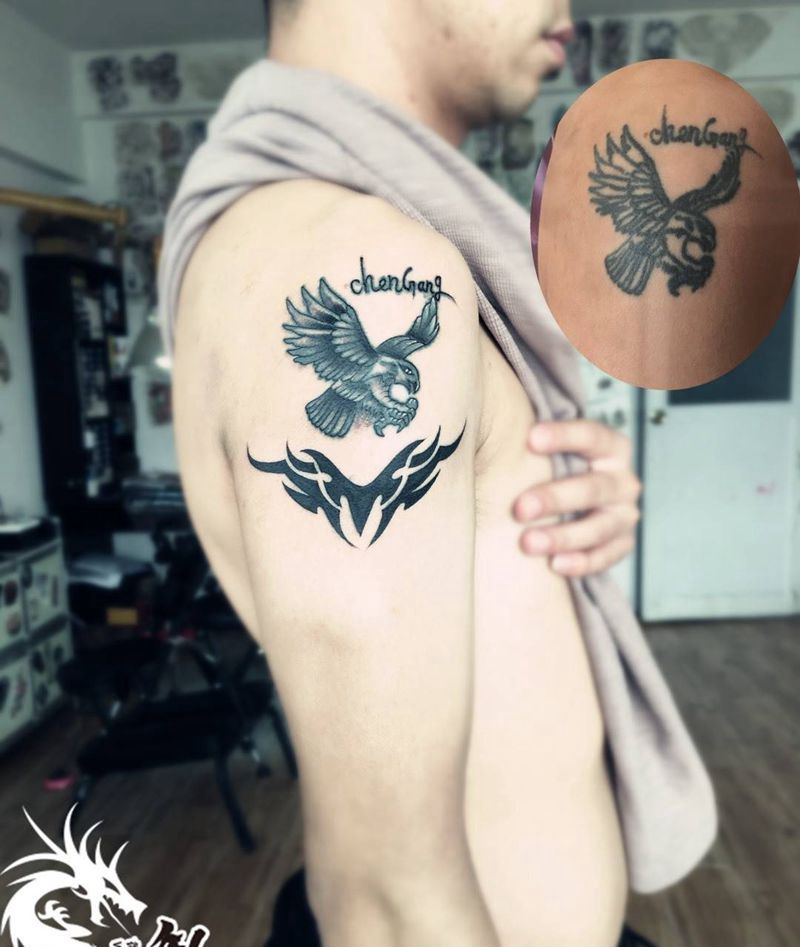 • 纹身吧推荐的披肩图腾半胛纹身图案作品展示