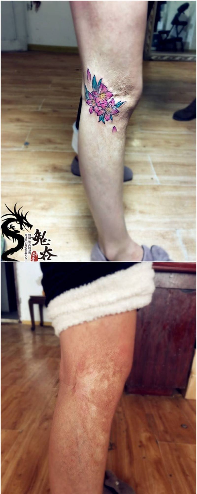 • T网红王老大花腿龙纹身图片_腿部新传统纹身图案