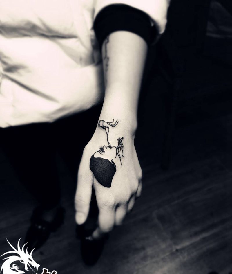 • 手背潮流时尚的玫瑰花眼睛纹身图案