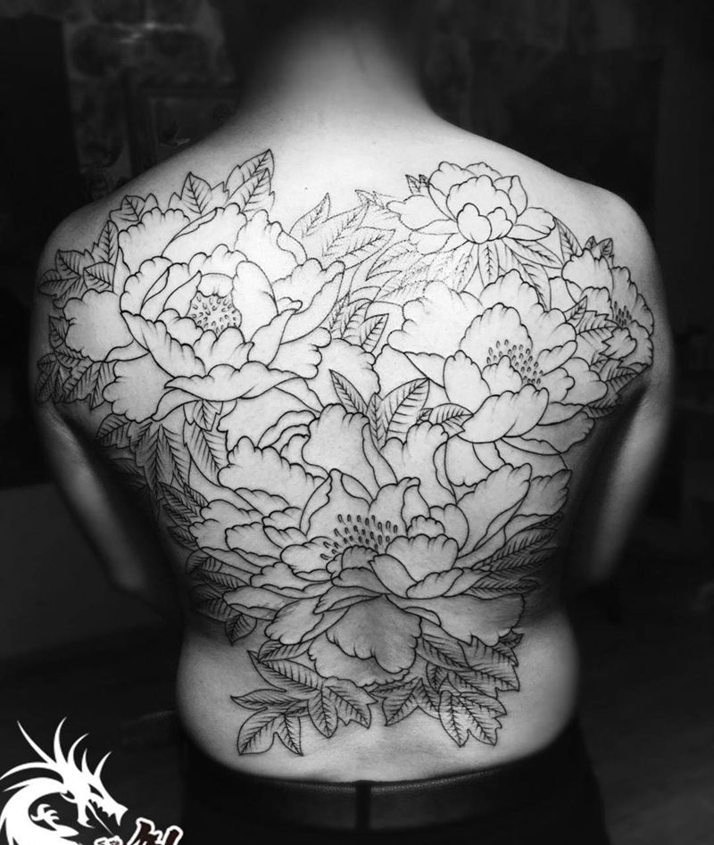 • 黑灰满背纹身图案