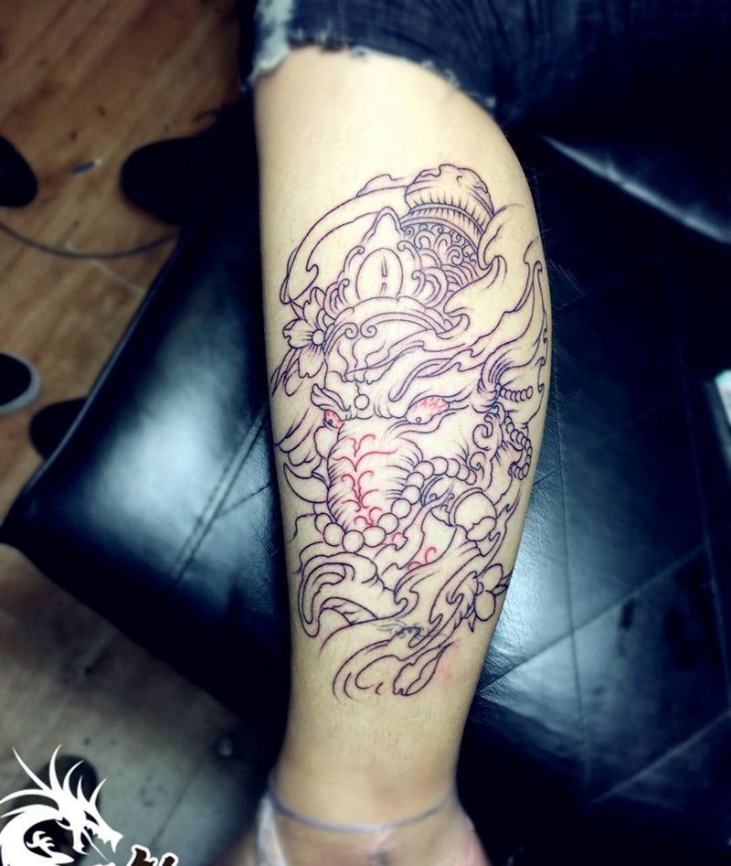 • T网红王老大花腿龙纹身图片_腿部新传统纹身图案