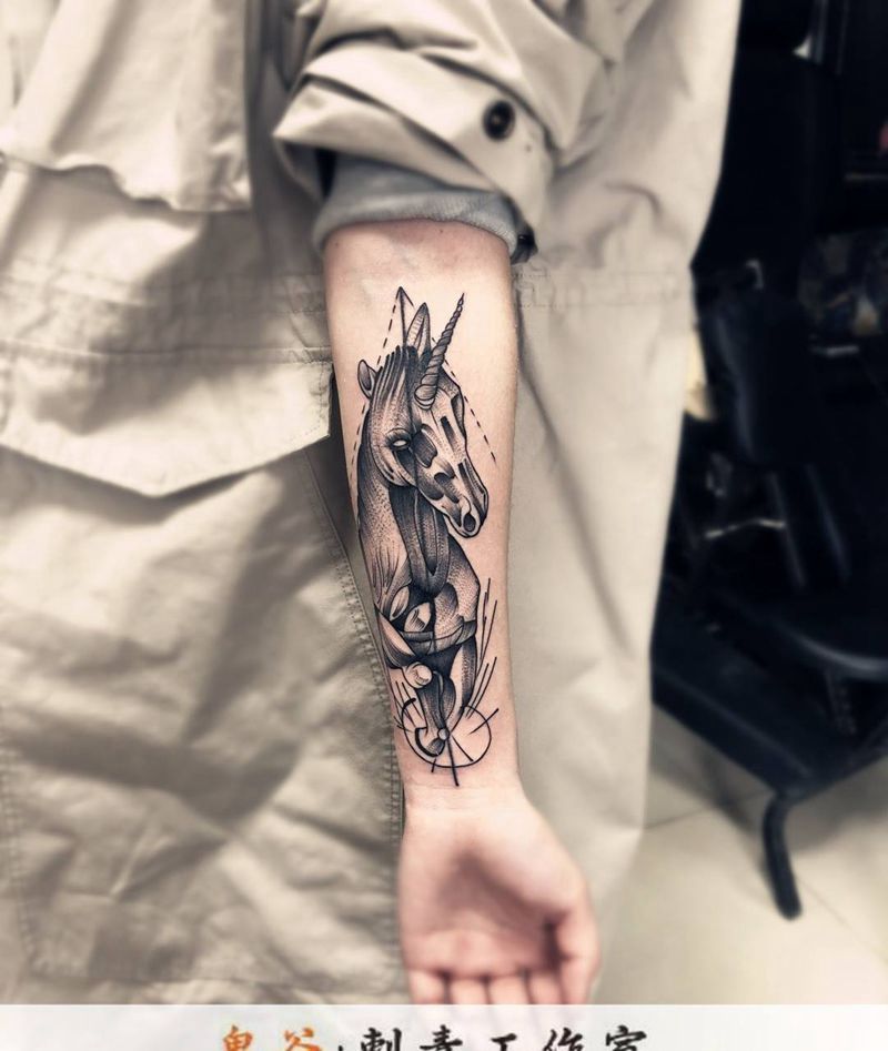 当前位置: 首页 >安徽省亳州市纹身店-鬼谷刺青工作室纹身图案>新风格独角兽纹身图片