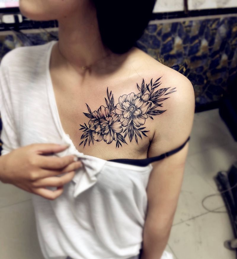 • 女性大花胸纹身_43张霸气漂亮的女性大花胸纹身图案作品