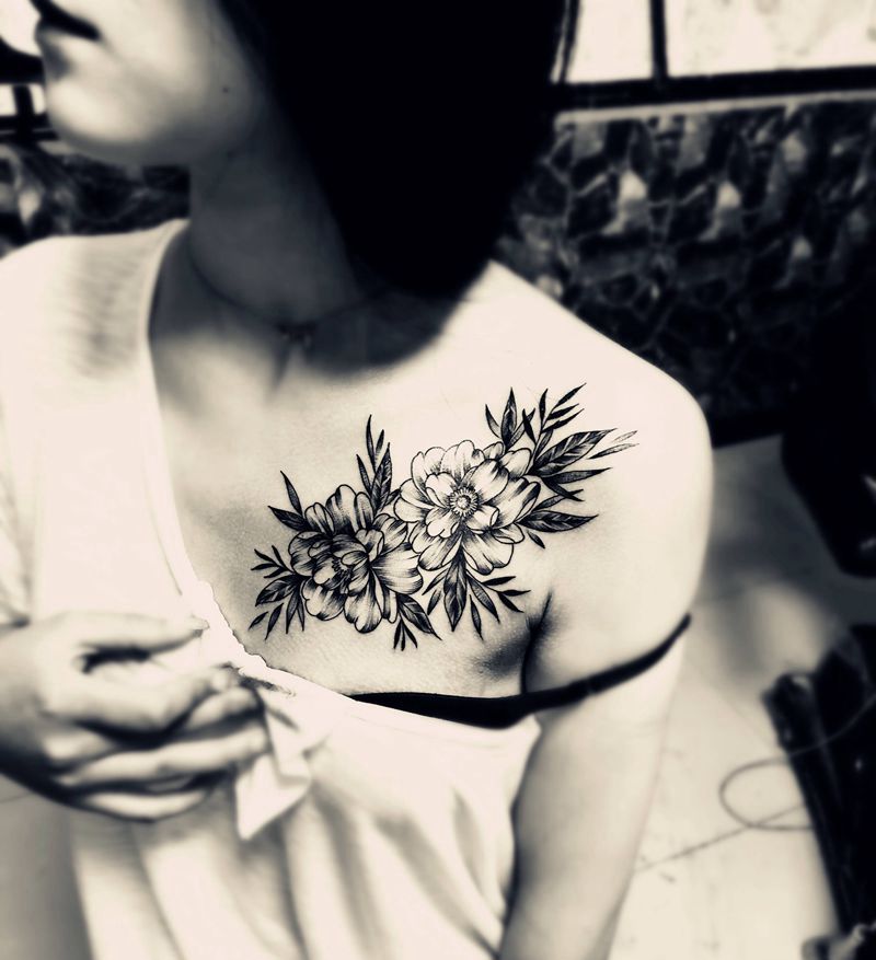 • 女性大花胸纹身_43张霸气漂亮的女性大花胸纹身图案作品