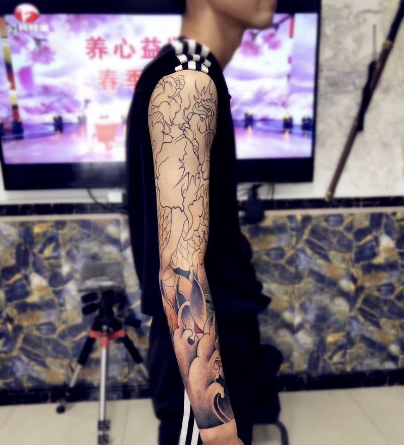 当前位置: 首页 >安徽省亳州市纹身店-鬼谷刺青工作室纹身图案>花臂未完纹身图片_老传统纹身图案