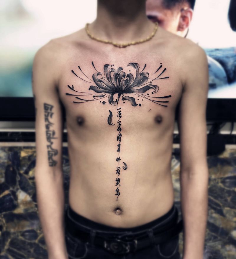 • 女性大花胸纹身_43张霸气漂亮的女性大花胸纹身图案作品