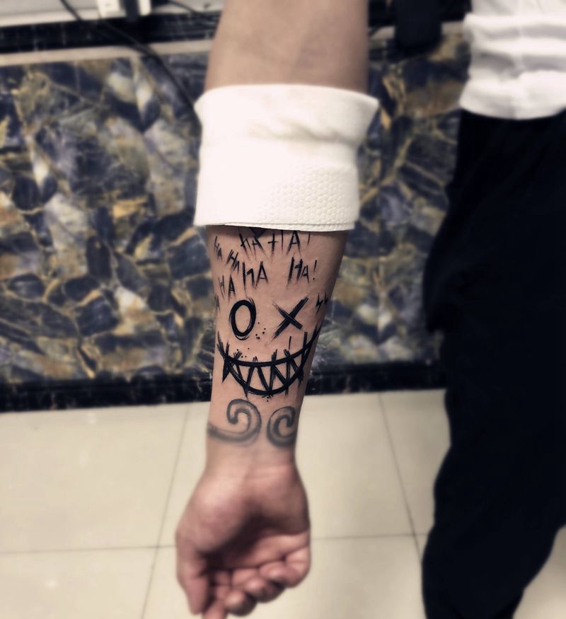 当前位置: 首页 >安徽省亳州市纹身店-鬼谷刺青工作室纹身图案>恶魔笑脸纹身图片_手臂纹身图案