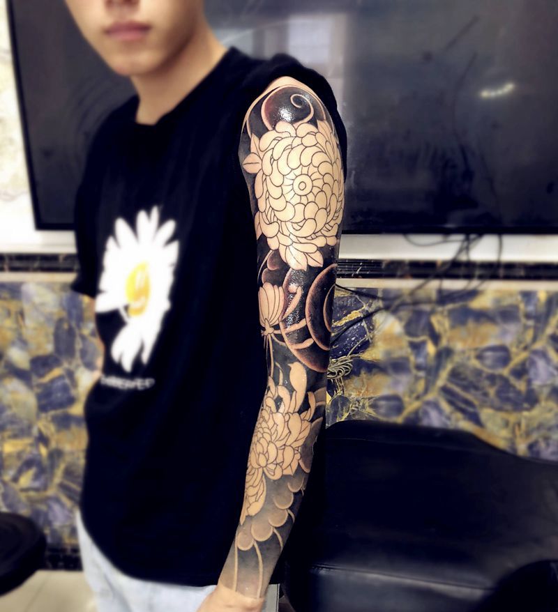 当前位置: 首页 >安徽省亳州市纹身店-鬼谷刺青工作室纹身图案>花臂纹身图片_新传统纹身图案