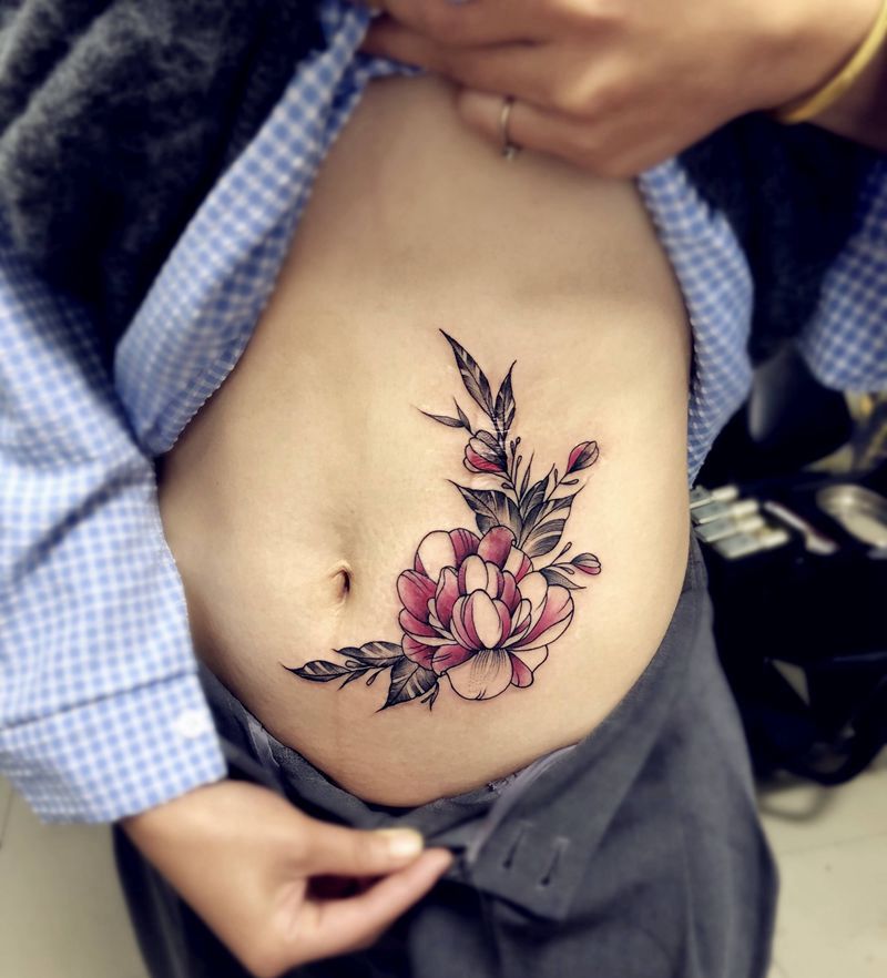 • 女性大花胸纹身_43张霸气漂亮的女性大花胸纹身图案作品