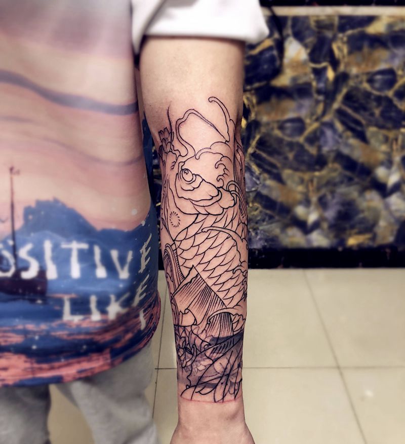 当前位置: 首页 >安徽省亳州市纹身店-鬼谷刺青工作室纹身图案>鱼线条纹身图片_新传统纹身图案