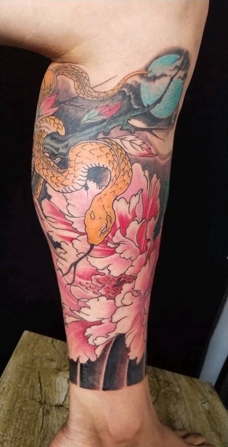 • T网红王老大花腿龙纹身图片_腿部新传统纹身图案