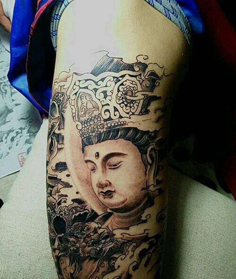 • T网红王老大花腿龙纹身图片_腿部新传统纹身图案