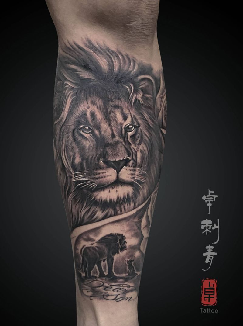 当前位置: 首页 >福建省福州市纹身店-卓刺青纹身图案>狮子纹身图片_腿部欧美写实纹身图案