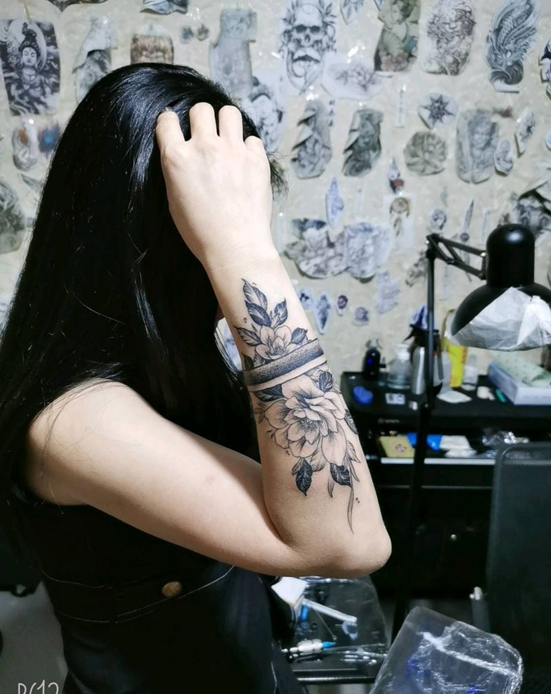 素花纹身图片_手臂素花纹身图案