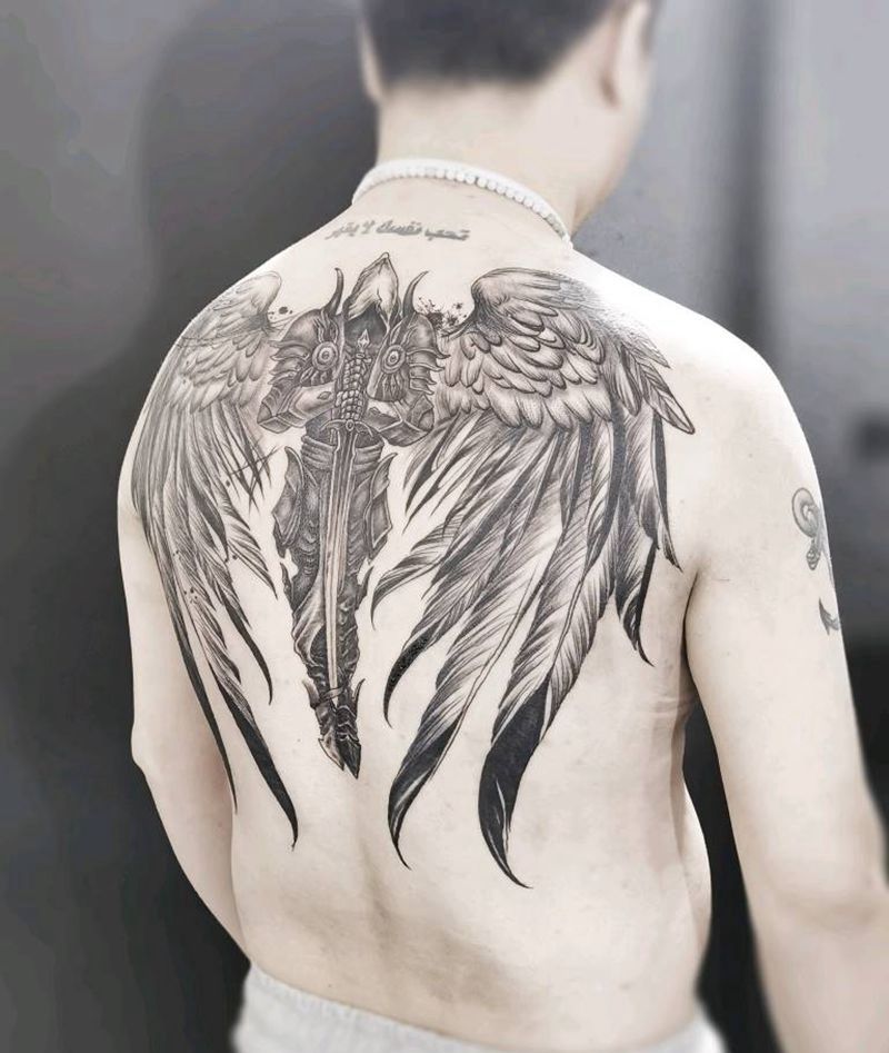 守护天使纹身图片_背部欧美写实纹身图案