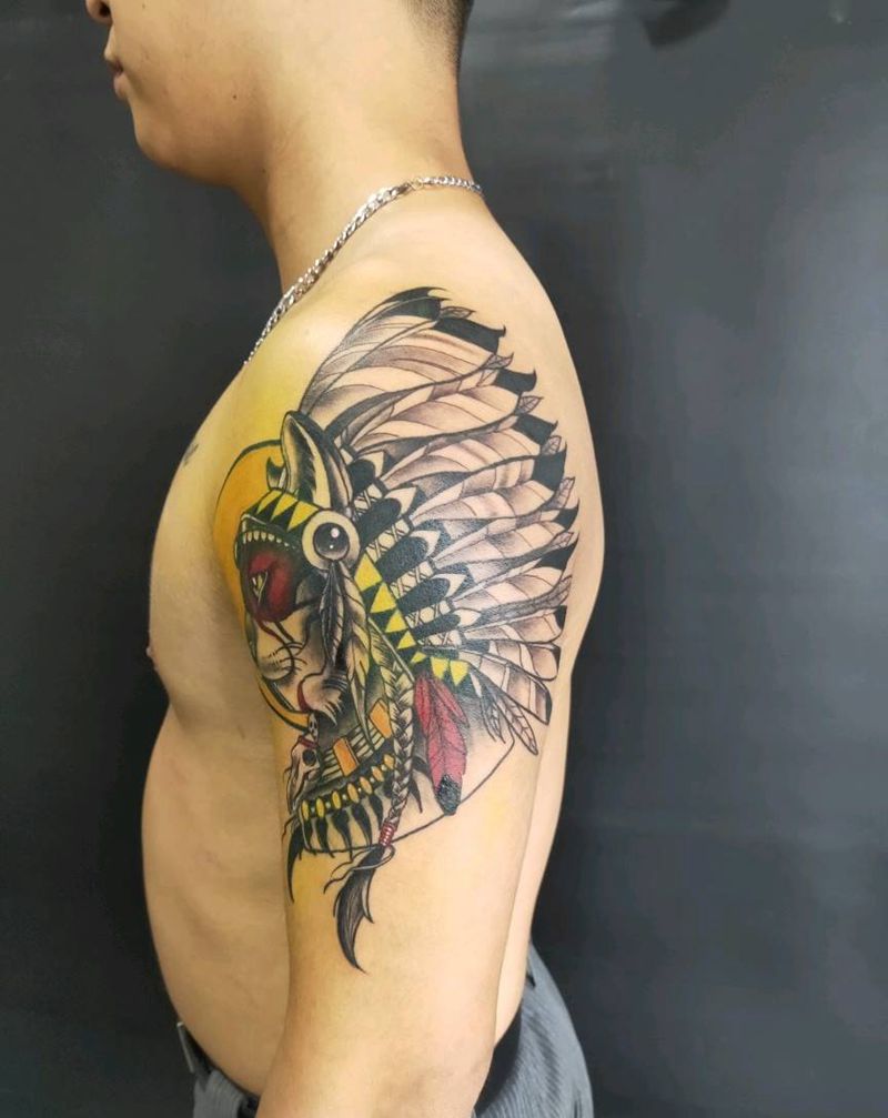 印第安猫纹身图片_手臂欧美写实纹身图案
