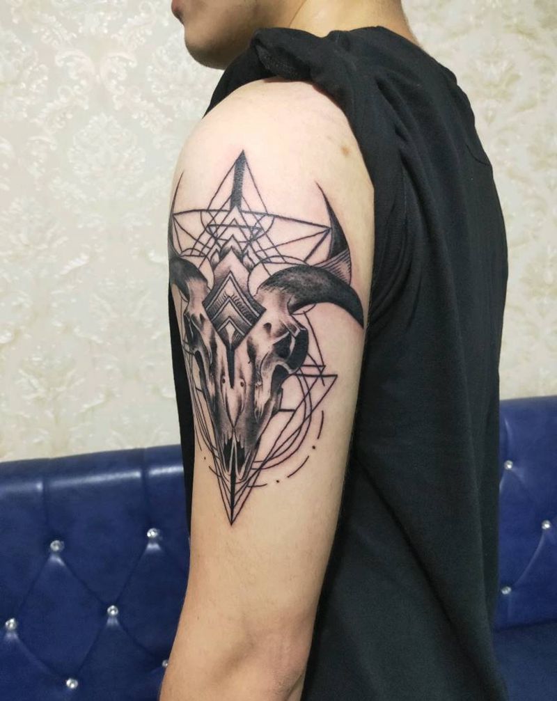 白羊座的客人纹身图片_手臂欧美写实纹身图案