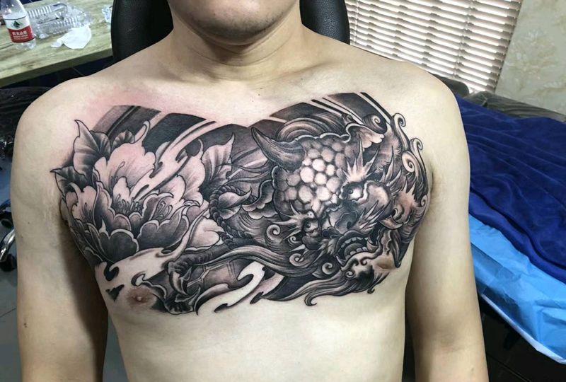 当前位置: 首页 >福建省福州市纹身店-卓刺青纹身图案>唐狮牡丹纹身图片