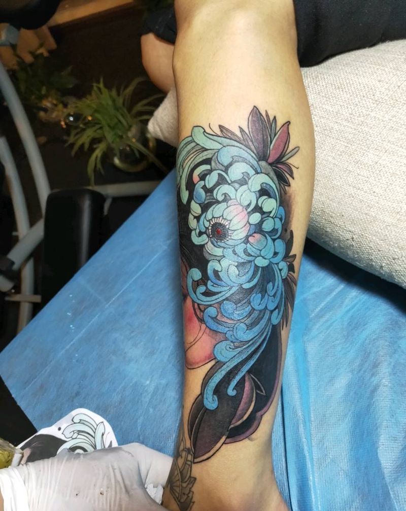 • T网红王老大花腿龙纹身图片_腿部新传统纹身图案
