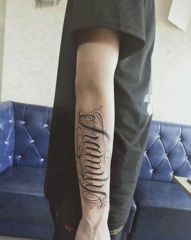当前位置: 首页 >福建省福州市纹身店-卓刺青纹身图案>花体字family纹身图片_手臂纹身图案