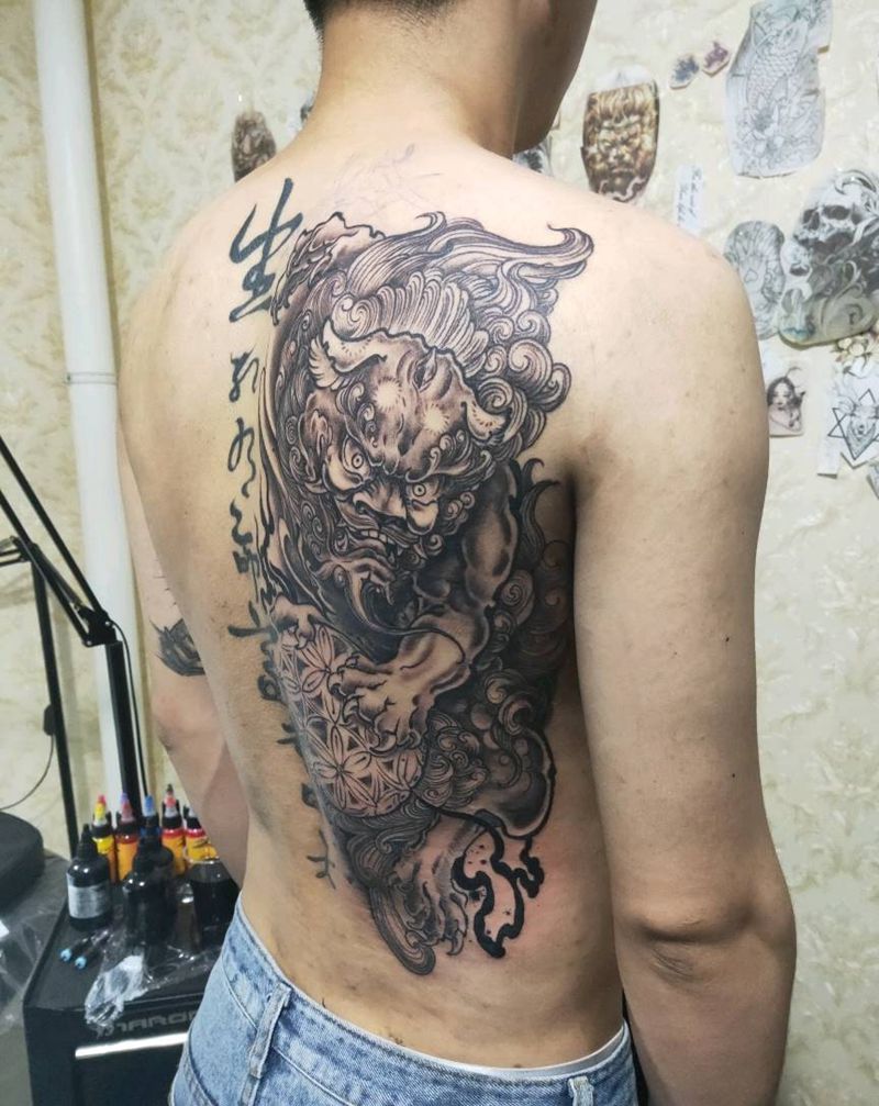 当前位置: 首页 >福建省福州市纹身店-卓刺青纹身图案>唐狮纹身图片_背部老传统纹身图案