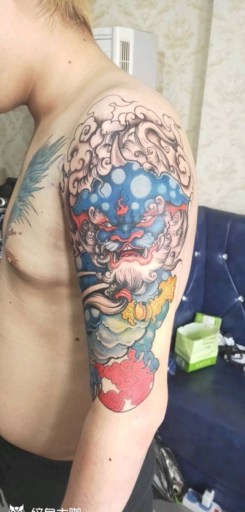 当前位置: 首页 >福建省福州市纹身店-卓刺青纹身图案>唐狮花臂纹身图片_手臂新传统纹身图案