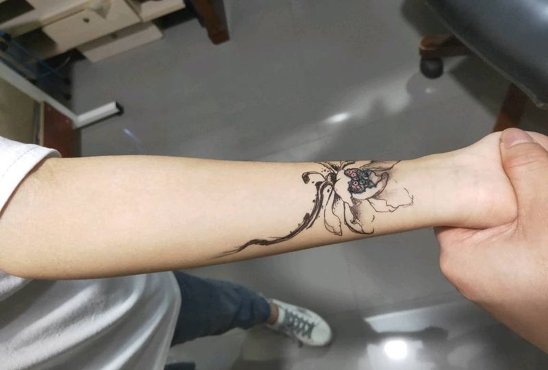 荷花遮盖作品纹身图片_手部新传统纹身图案