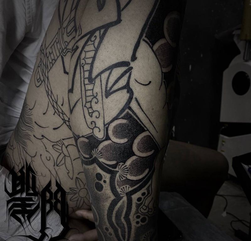 黑灰满背纹身图案