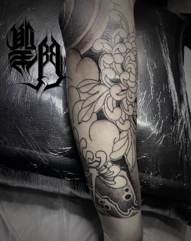 当前位置: 首页 >安徽省亳州市纹身店-聖門刺青纹身图案>菊花臂纹身图片_手臂老传统纹身图案