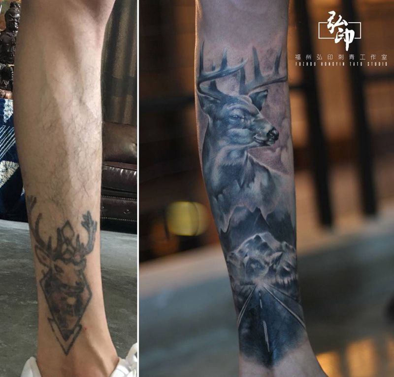 当前位置: 首页 >福建省福州市纹身店-弘印刺青(万象店)纹身图案>公鹿&公路(遮盖)纹身图片_脚部欧美写实纹身图案