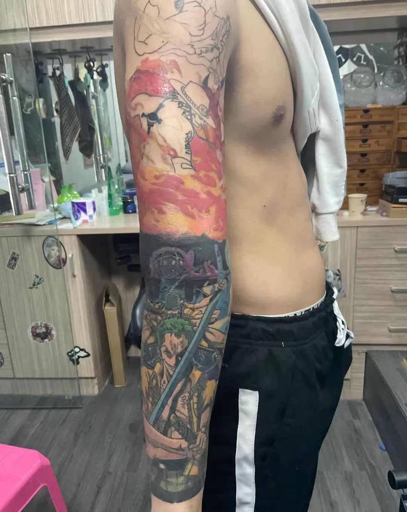 当前位置: 首页 >福建省福州市纹身店-零点刺青纹身图案>海贼王索隆纹身纹身图片_手臂New School纹身图案