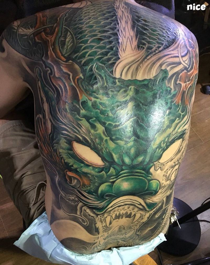 整背大龙纹身图片