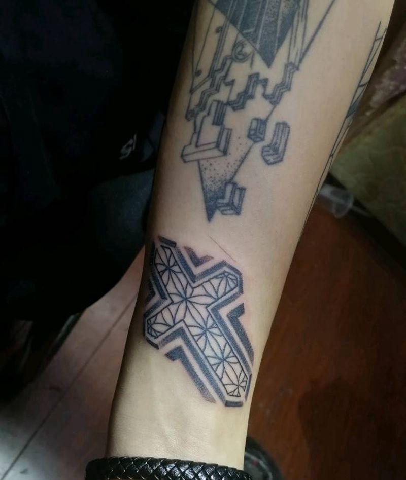 当前位置: 首页 >福建省福州市纹身店-零点刺青纹身图案>小臂清新十字架纹身图片_点刺纹身图案