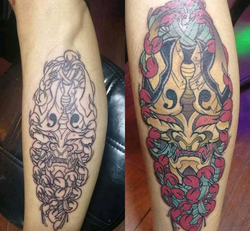 • T网红王老大花腿龙纹身图片_腿部新传统纹身图案