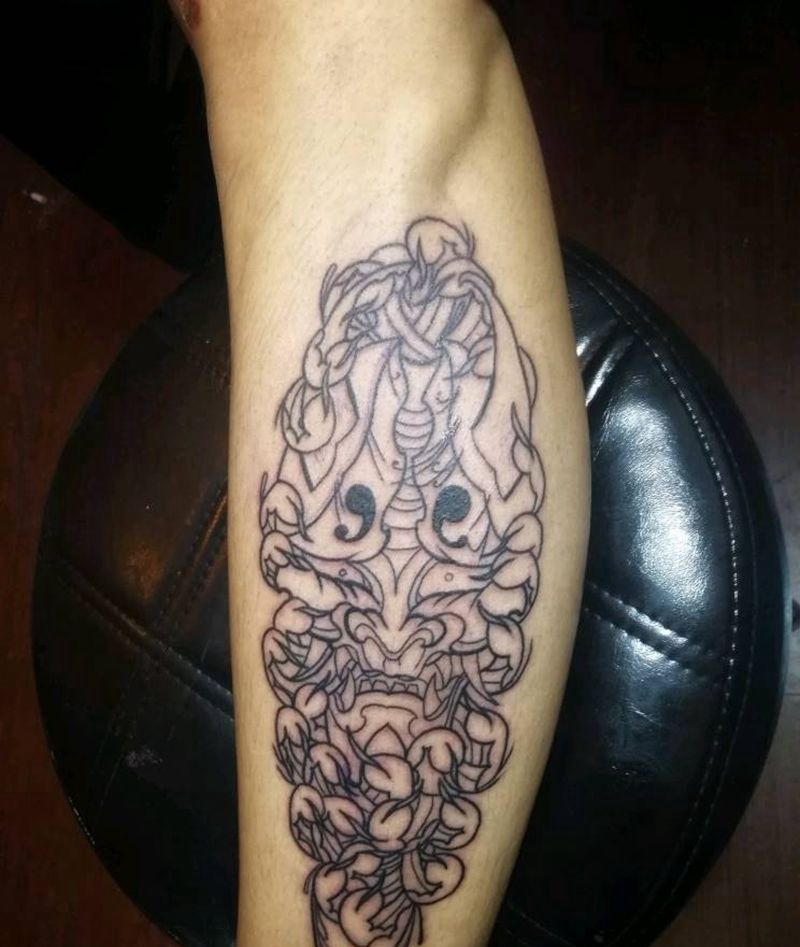 • T网红王老大花腿龙纹身图片_腿部新传统纹身图案