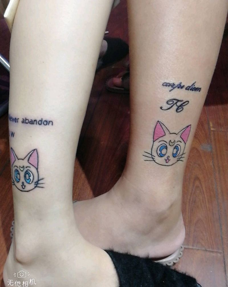 小清新 猫纹身图片_脚部纹身图案