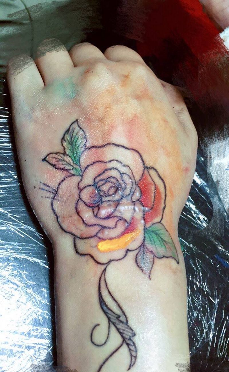 • 手背潮流时尚的玫瑰花眼睛纹身图案