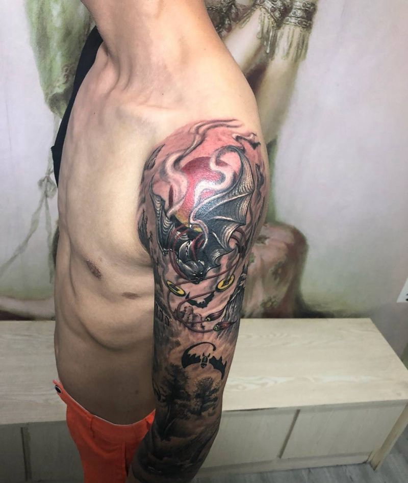 当前位置: 首页 >福建省福州市纹身店-福建纹铭刺青纹身图案>旧图衔接山水七分臂纹身图片