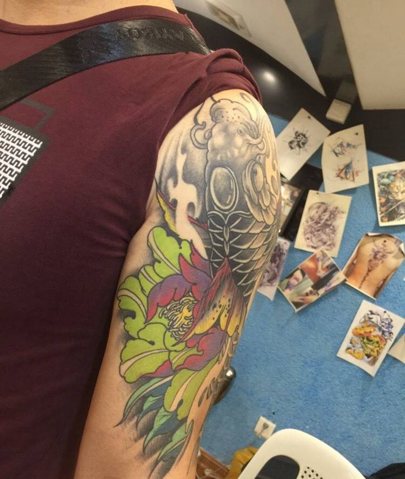 当前位置: 首页 >福建省福州市纹身店-福建纹铭刺青纹身图案>大臂锦鲤纹身图片_成品臀部传统清新动物植物纹身图案