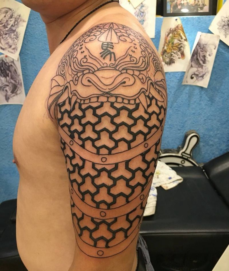 当前位置: 首页 >福建省福州市纹身店-福建纹铭刺青纹身图案>手臂铠甲纹身图片_成品臀部传统静物纹身图案