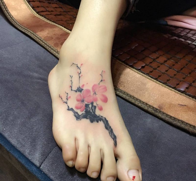 当前位置: 首页 >福建省福州市纹身店-福建纹铭刺青纹身图案>手工设计梅花纹身图片_手稿插画成品脚部传统清新国画植物原创纹身图案