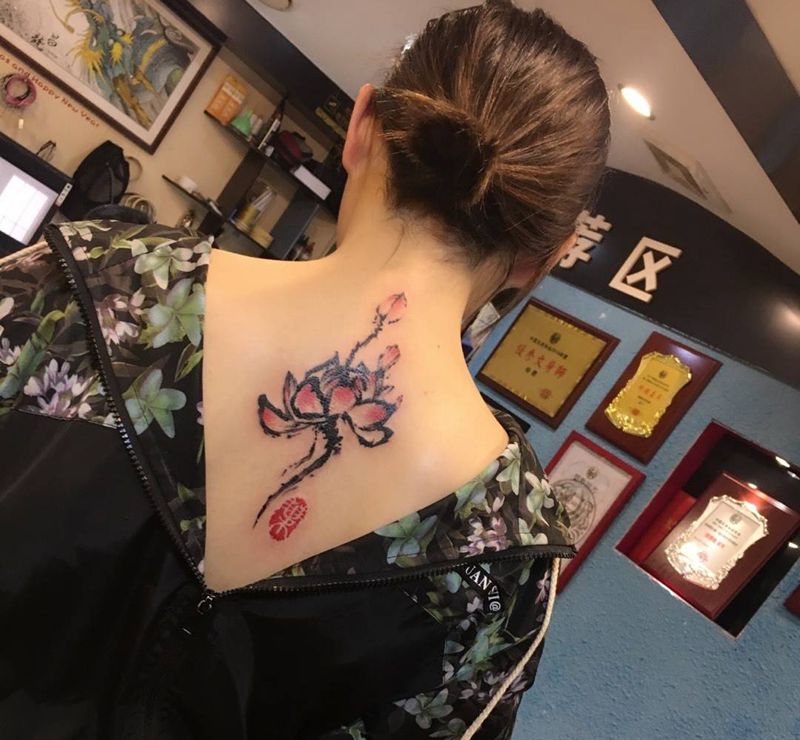 当前位置: 首页 >福建省福州市纹身店-福建纹铭刺青纹身图案>水墨荷花纹身图片